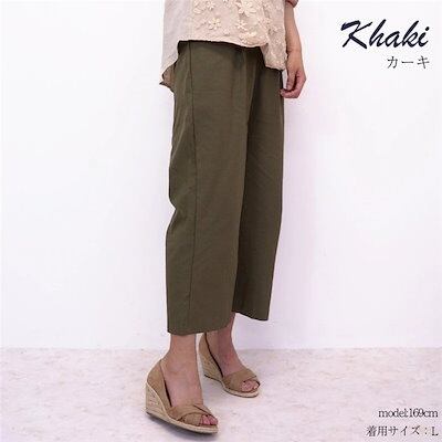 ガウチョ ゆったり ウェストゴム ワイドパンツ パンツ ベージュ 麻混 レディース ン混 ンパンツ 麻 ン 無地 ブラック 黒 大きいサイズ