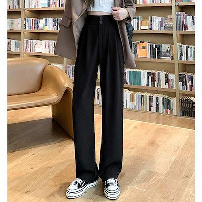 タックパンツワイドパンツレディース低身長高身長スラックスパンツ大きいサイズテーパードパンツグレーオフィスカジュアルストレートパンツ通勤ボトムスロングパンツきれいめ