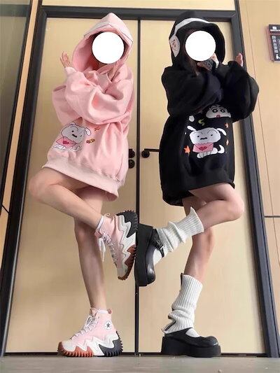 2025新品入荷激安かわいいクレヨンしんちゃん女の子春秋ベルベットカップルジャケットフード付きスウェットシャツ