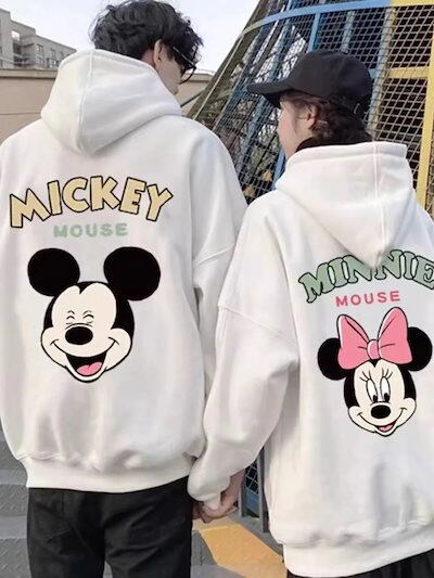 2025新品入荷激安男性と女性のためのミッキーマウスカップルスウェットシャツプラスベルベット厚手のコットンフード付きジャケットフード付きスウェットシャツ