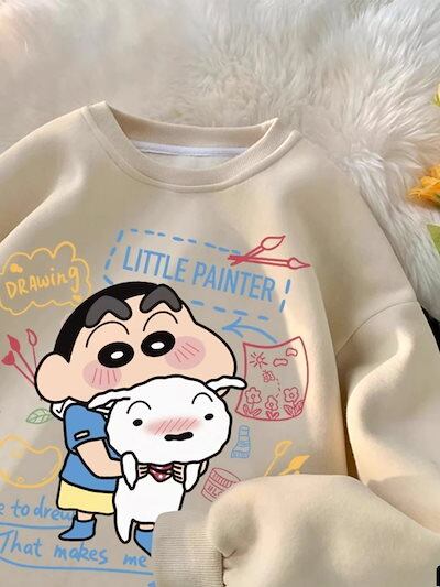 2025新品入荷激安スーパークレヨンしんちゃん スウェットシャツ 男女兼用 23 プラス フリース コットン トップス フード付きスウェットシャツ