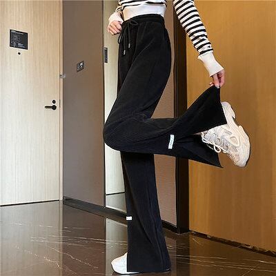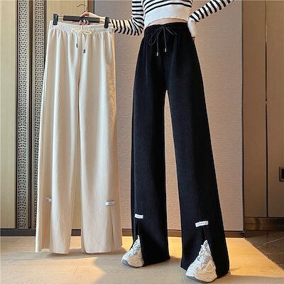 小さなハイウエストスリットワイドレッグカジュアルパンツ女性のための 2024 ルーズストレートスリムスポーツパンツ女性のための
