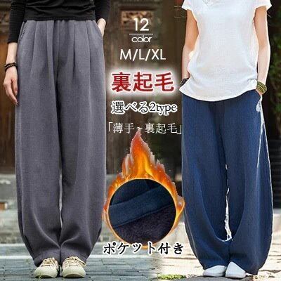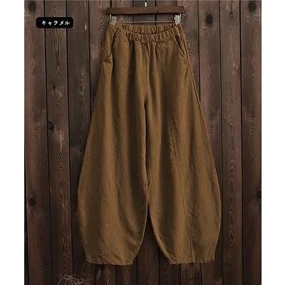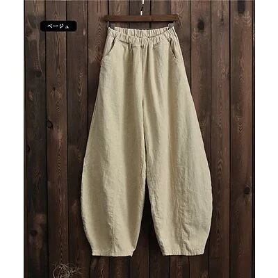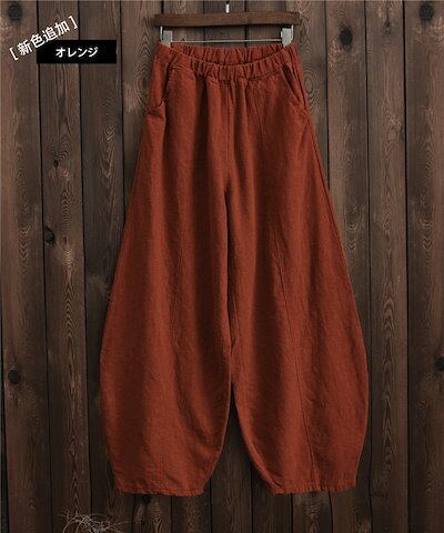 韓国ファッション リネンワイドパンツ レディース綿麻パンツワイドパンツロング ウエストゴム無地美脚カ