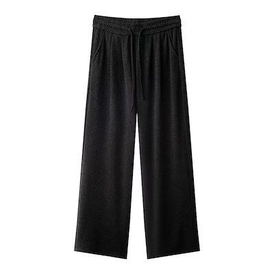 アメリカのソリッドカラー ワイドレッグパンツ女 ハイウエストルーズドレープドローストリングカジュアルスポーツパンツ