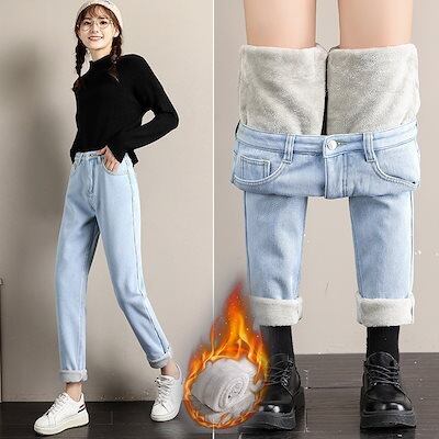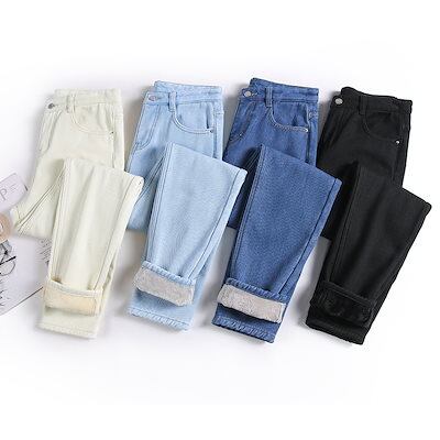 ワイドパンツレディース ジーンズ 裏起毛 デニムボトムス デニムパンツ ロングパンツ ロングデニム ハイウエスト ポケット付き ジップ付き ゆったり 厚手 あったか 暖かい スキニーパンツ