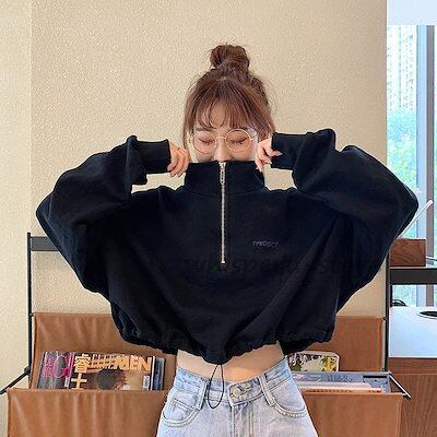 ショート丈 トレーナー ダンス 衣装 へそだし レディース プルオーバー 秋 冬 春 無地 おしゃれ 長袖 可愛い トップス ゆったり 体型カバー トップス カジュアル