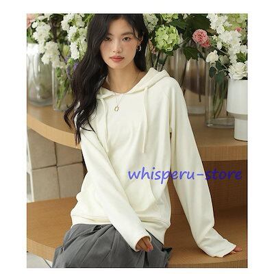 パーカー レディース 長袖 体型カバー プルオーバー 4色 無地 トップス カジュアル ゆったり 可愛い おしゃれ シンプル