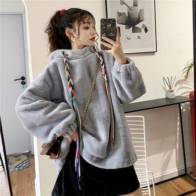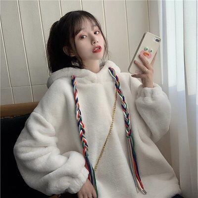 裏起毛ファッション パ一力一 ふわふわ 春冬パーカー可愛い 韓国ファッション フード付き 体型カバー 保温性 トップス 春アウター 可愛いパーカー レディース