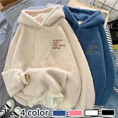 裏起毛ファッション パ一力一 春冬 裹起毛 パーカー 韓国ファッション ゆったり百掛け ラムズウール フード付き 体型カバー 保温性 トップス 春アウター 可愛いパーカー レディース