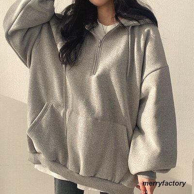 アウター パーカー ハーフジップパーカー レディース トップス トレーナー スウェット かわいい おしゃれ 可愛い 長袖 薄手 普段着 通勤 韓国ファッション