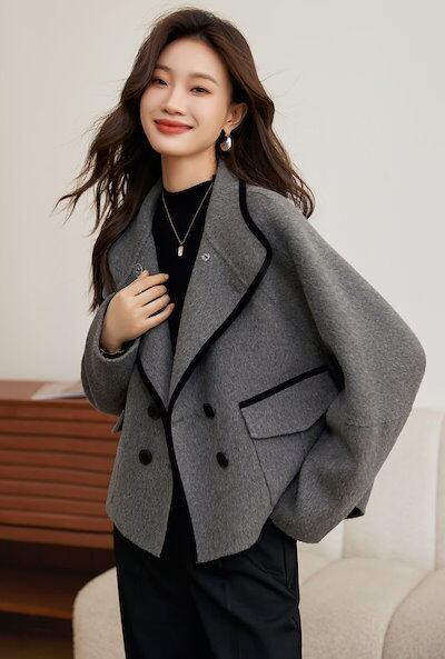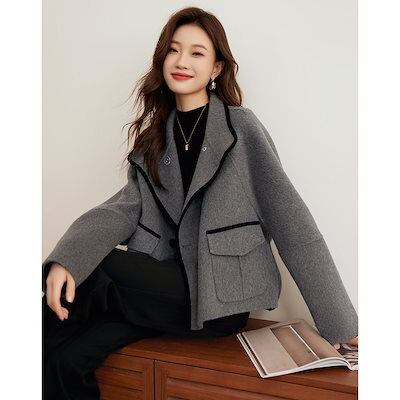 本日の限定商品2024秋冬新作 ファッション ジャケット レディース ノーカラージャケット 韓国 ジャケット ロングジャケット 秋服 レディース 韓国版 ダブルブレスト・スプライシング・ツイードコート