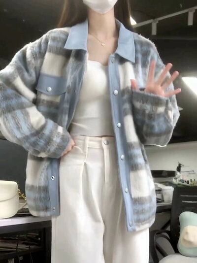 本日の限定商品ジャケット レディース ノーカラージャケット 韓国 ジャケット ロングジャケット 秋服 レディース ツイードチェックシャツ 厚手 アメリカン・トレンド 春秋長袖シャツジャケット
