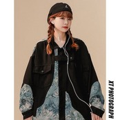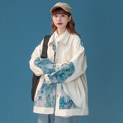 韓国ファッション 花柄 パッチワーク カジュアル 野球服 春秋 ニッチデザイン ジャケット カジュアル レディース トップス