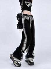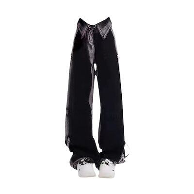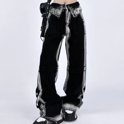 【3日以内に出荷】ヴィンテージカラーブロッキングデニムパンツ レディースウェア大きいサイズストレートパンツワイドパンツロングパンツ