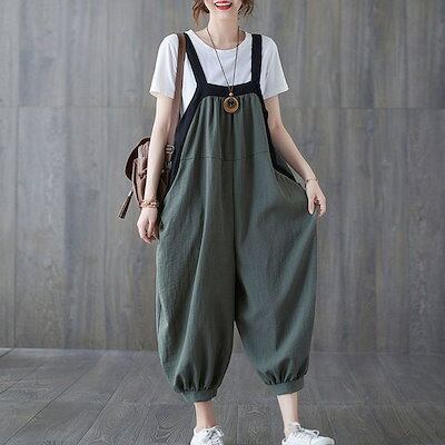 春 夏 人気なオールインワン パンツワイドパンツ ゆったり 9分丈 サルエルマタニティ 大きいサイズ きれいめ オーバーオール レディース 体型カバー サロペット