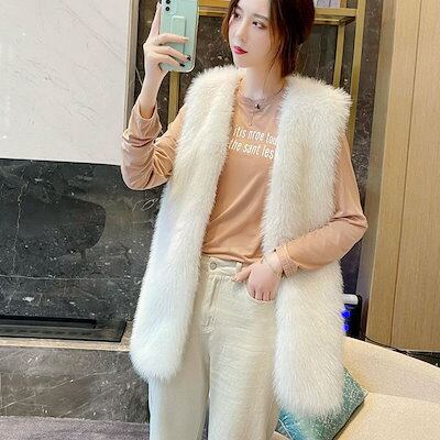 メガ割 アウター ファーベスト レディース ベスト ファーコート 必須のアイテム! ロングベスト ロング ジレ もこもこ 大きいサイズ 体型カバー 上品 ファージャケット ノースリーブ コーディガン