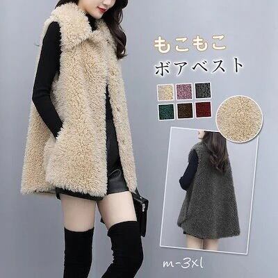 ボアベスト レディース ファーベスト フェイクファー ジレ アウター ボアコート ベスト ジャケット ロング 羽織り もこもこ 防寒 可愛い ゆったり