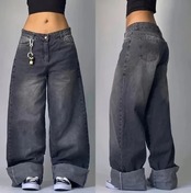 女性のカジュアルなストレートとワイドレッグパンツ,大きなストリート,y2kのヒップホップパターン,ヨーロッパとアメリカ y2k ボトムス T240901112207_07