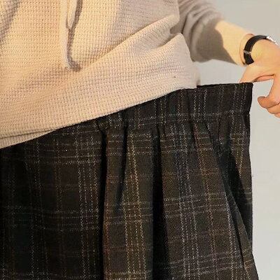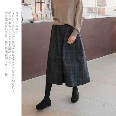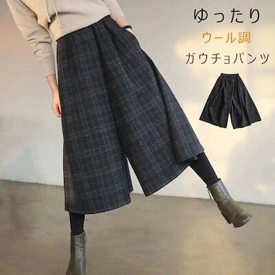 ガウチョパンツ ワイドパンツ 秋冬 チェック パンツ レディース きれいめ ボトムス スカーチョ 冬 防寒 保温 ロングパンツ ワイド ふんわり ボリューム キュロットパンツ 九分丈 ウ