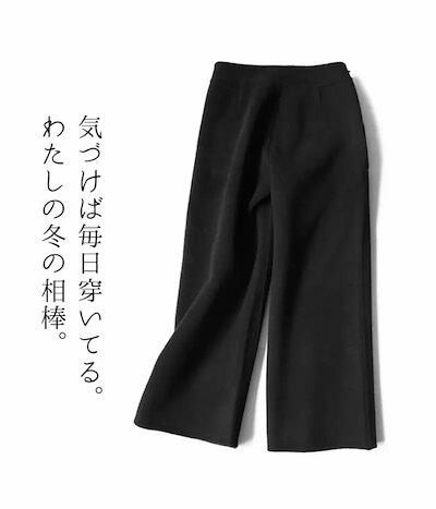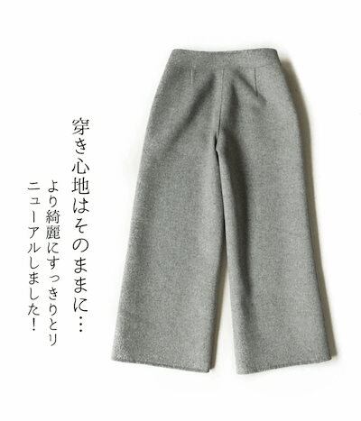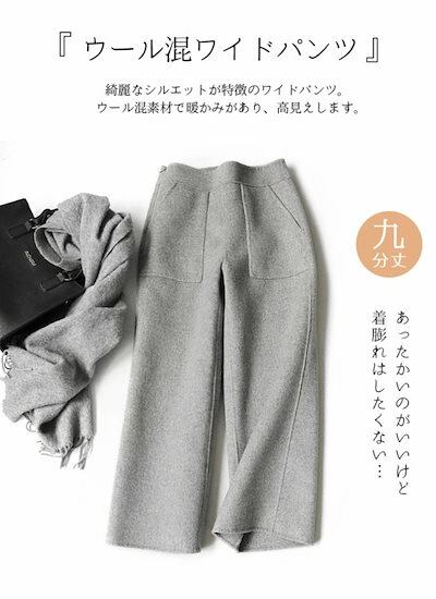 2個で0FFパンツ ニット ウール ワイドパンツ 九分丈 起毛感 レディース ストレートパンツ ウール90% リブパンツ ボトムス ガウチョパンツ ぬくぬくパンツ
