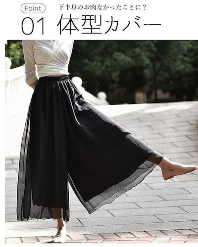 2024新作 ガウチョパンツ ワイドパンツ レディース 春 夏 フレアパンツ ガウチョ スカンツ スカーチョ ロングパンツ ズボン パンツ ロング丈 ロング シフォンパンツ ウエストゴム 大きいサイズ