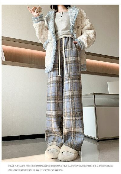 ワイドパンツ レディース 長ズボン ロングパンツ ロング丈 チェック柄 秋冬 チェック柄パンツ ラシャ ゆったり ラシャパンツ ガウチョパンツ ストレートパンツ 体型カバー 美脚 細見え