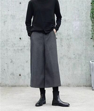 ワイドパンツ ウール調 レディース 冬 ゴム ゆったり パンツ ロングパンツ 秋冬 ガウチョパンツ ロング丈 大きいサイズ 九分丈 ガウチョ 九分丈パンツ 長ズボン ひざ下