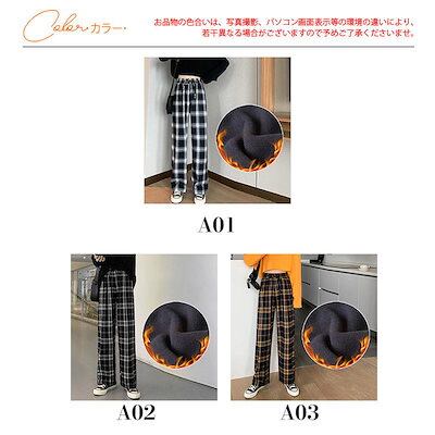 ワイドパンツ レディース ガウチョパンツ 裏起毛 ズボン ボトムス ハイウエスト チェック柄 カジュアル ゆったり コーデ ファション