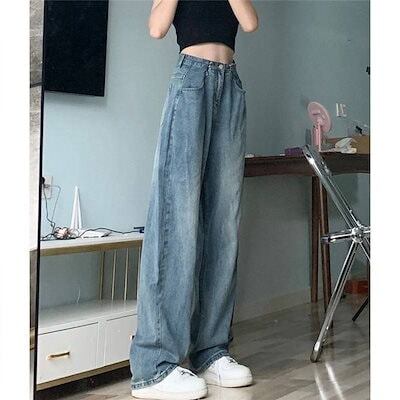 ガウチョパンツ 着痩せ ハイウエストワイドデニム 学生 やせて見える ストレートパンツ ワイドパンツ レディース