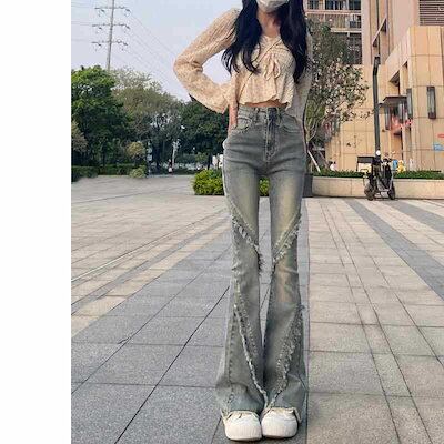 ガウチョパンツ バリ ジーパン ハイウエスト 着痩せ やせて見える ラッパズボン ワイドパンツ レディース