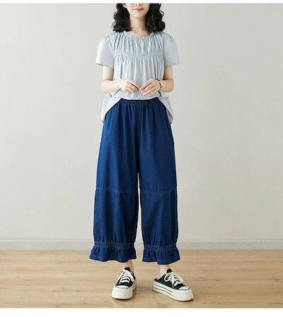 デニム レディース パンツ ボトムス 春夏 デニムパンツ パンツ 大人可愛い きれいめ 大きいサイズ ワイド デニムテーパードパンツ カーゴパンツ ロング ボトムス ワイドデニム ロールアップ ノアー