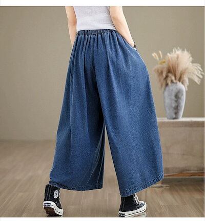 パンツ 春夏 デニムパンツ ワイドパンツ 花柄 レディース 大きいサイズ かわいい 女の子 可愛い きれいめ ガウチョパンツ スカーチョ バギーパンツ テーパードパンツ ウエストゴム ロング ボトムス