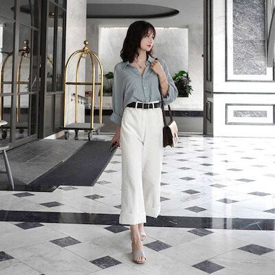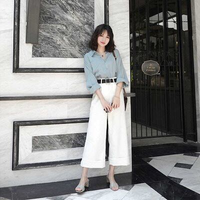 レディース 上下2点セット 長袖ブラウス + ワイドレッグパンツ ハイネック カジュアル フォーマル 可愛い フェミニン きれいめ 上品 エレガント おしゃれ お出かけ オフィス お呼ばれ ブルー