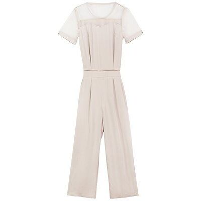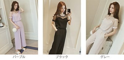 レディース サロペット 透け感 透け素材 オールインワン オーバーオール ワイドレッグパンツ ボトムス カジュアル 可愛い フェミニン おしゃれ お出かけ デイリー 普段着 春 夏 パープル ブ