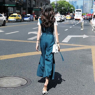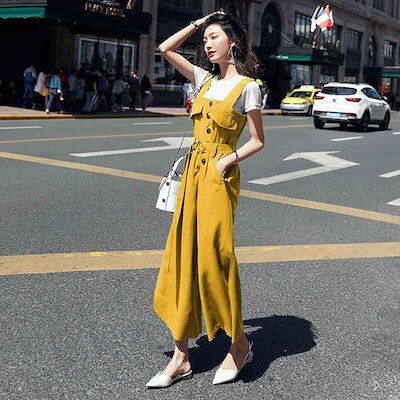 レディース ジャンプスーツ ワイドレッグパンツ オールインワン クロップド 半端丈 オーバーオール ボトムス エレガント きれいめ カジュアル 可愛い フェミニン おしゃれ お出かけ ブルー