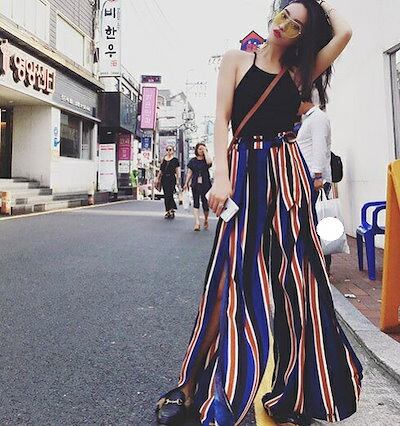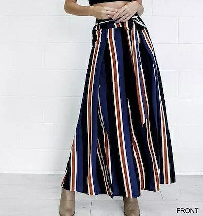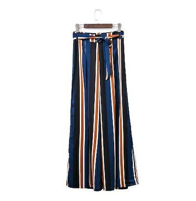 レディース ストライプ ワイドレッグパンツ スリット ビーチ ハイウエスト ボトムス カジュアル 可愛い フェミニン セクシー きれいめ エレガント おしゃれ お出かけ お呼ばれ ネイビー ブル