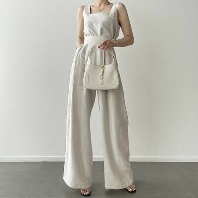 レディース セットアップ カットソー スクエアネック ノースリーブ ワイドレッグパンツ ハイウエスト カジュアル 可愛い きれいめ 上品 エレガント おしゃれ お出かけ オフィス ブラック ホ