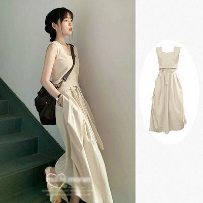 レディース セットアップ ツーピース ノースリーブ スクエアネック ワイドパンツ ガウチョパンツ 無地 シンプル カジュアル 大人可愛い フェミニン ラフスタイル 部屋着 リラックス リゾート デイリ