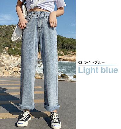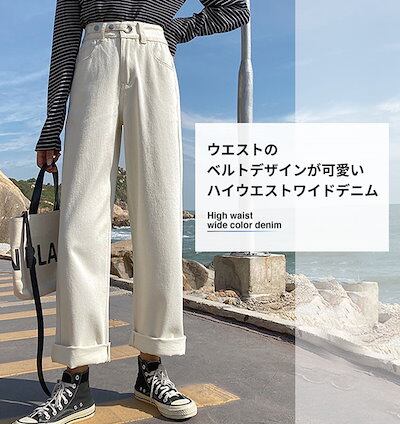 デニム レディース デニムパンツ 韓国 ワイド ジーンズ ジーパン パンツ ボトムス おしゃれ かわいい ボーイフレンド ワイド きれいめ ストレート ハイウエスト インディゴ ブラック 【メー