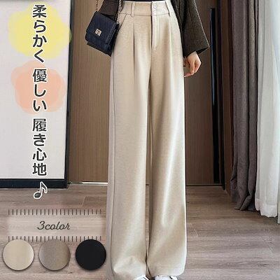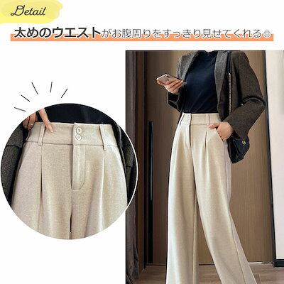 ワイドパンツ ストレートパンツ レディース ハイウエスト パンツ ウールライク ダブルボタン 秋 冬 大きいサイズ ゆったり 無地 シンプル おしゃれ かわいい ウエストゴム ワイド ズボン ロ