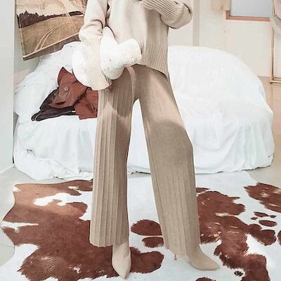 レディース ボトムス ロング ワイド パンツ プリーツ 無地 秋冬 カジュアル 大人可愛い フェミニン オフィス お出かけ デート デイリー ホワイト ブラック グレー ベージュ フリーサイズ