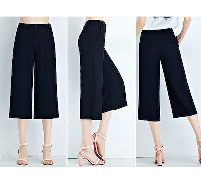 レディース ワイドレッグパンツ クロップド ゆったり 美脚 脚長 美シルエット ボトムス 半端丈 春 夏 人気 女性 大人 カジュアル 可愛い おしゃれ きれいめ 上品 セクシー ブラック 黒 S M