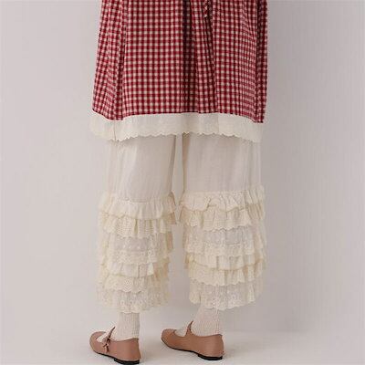 ロング ペチコート インナー スカラップ 刺繍 ペチパンツ レディース 春 夏 秋 ペチコート パンツ ロング ワンピース下 花柄刺繍 インナー 九分丈 ボトムス ワイド 下着 かわいい ナチュラル
