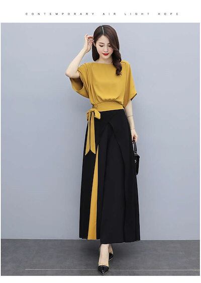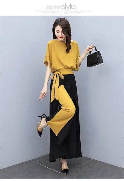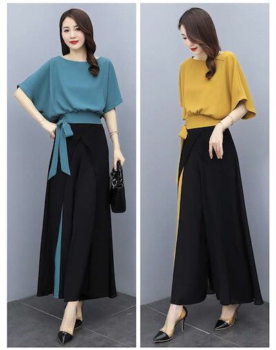 セットアップ レディース カジュアル パンツセットアップ ワイドパンツ ウエストリボン トップス パンツ 夏 ドルマンスリーブ 2点セット ボトムス 可愛い シフォン フォーマル ハイウエスト 上品