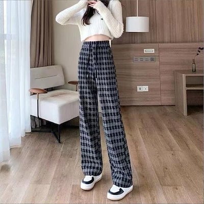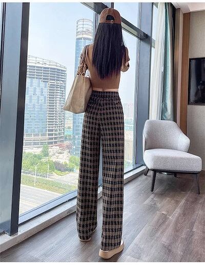 パンツ ワイド レディース きれいめ 千鳥格子 総柄 ボトムス ロング ロングパンツ ボトムス 裏起毛 裏ボア ワイドパンツ ゆったり 厚手 秋冬 あたたか ウェストゴム ハイウェスト 防風 防寒 長