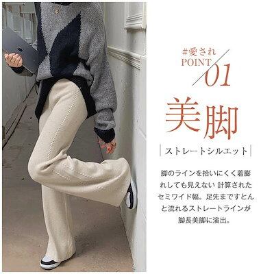 ニットパンツ レディース 秋冬 ワイドパンツ リブニット ボトムス リブ ロング パンツ きれいめ イージーパンツ ワイド リブ ストレート リブパンツ 長ズボン ウェストゴム