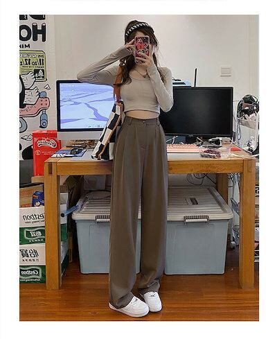 春新色 追加 ワイドパンツ レディース ボトムス パンツ きれいめ ワイド ロング 長ズボン ロング丈 ストレッチ ハイウェストパンツ ゆったり ポケット付き 美脚パンツ スーツパンツ 無地 秋冬 春