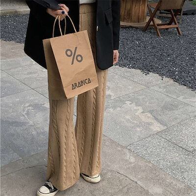 パンツ レディース ニット 秋冬 きれいめ ワイドパンツ ロング ボトムス ウエスト ゴム 暖か 防寒 ガウチョパンツ 大人 ゆったり リラックス きれいめ おしゃれ シンプル カジュアル 通勤 リブ