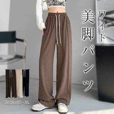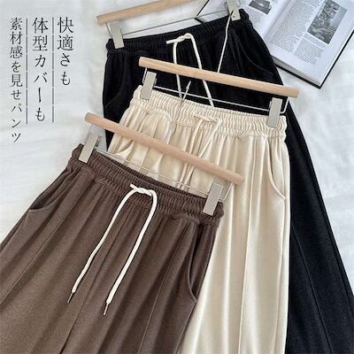 ワイドパンツ レディース パンツ 秋冬 ボトムス ワイド ロング ロング丈 ゴム ロングパンツ ズボン 長ズボン ガウチョパンツ フレアパンツ スカーチョ ハイウエスト ルームウェア 無地 ポケット