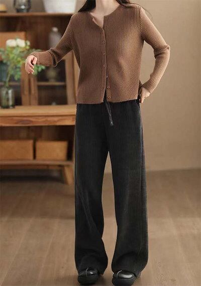 パンツ ボトムス レディース 秋 冬 ストレートパンツ 通勤ボトムス ロング丈 コーデュロイ リブパンツ サイドポケット ウェストゴム 無地 ゆったり ワイドパンツ ワイド カジュアル 暖か ゆったり